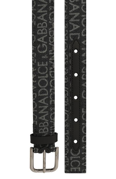 Ремень выполнили из брендированной эластичной ленты, а отделку — из кожи. Узкий аксессуар со шлевкой застегивается кобурной пряжкой в форме монограммы DG.