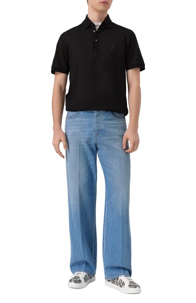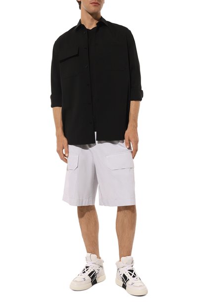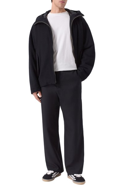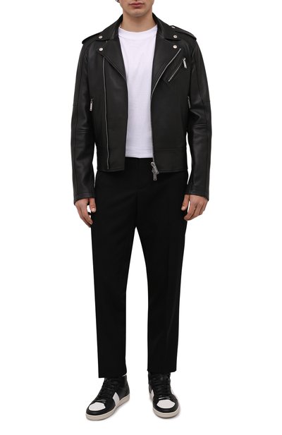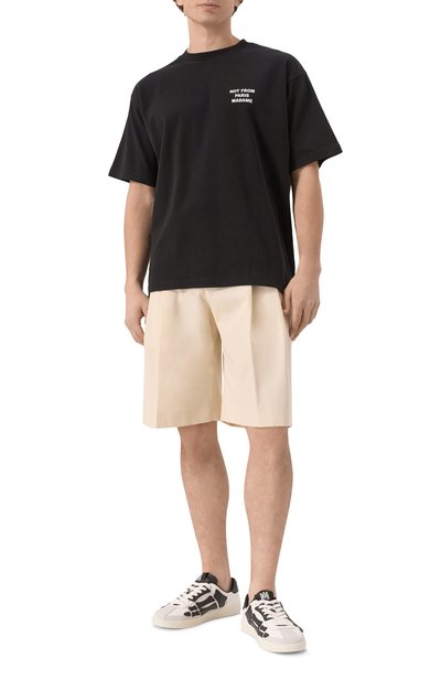 Высокие кеды Skel Court Hi сшили из плотного текстиля. Пару с резиновой брендированной подошвой украсили фирменными кожаными аппликациями в виде костей.