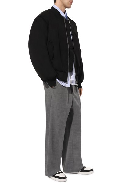 Кеды Skel-Top с перфорацией на мысе выполнили из гладкой и зернистой кожи. По бокам модели разместили фирменные аппликации-кости, язычок и задник украсили брендированными нашивками, а основание шнуровки дополнили пластиной с логотипом марки.