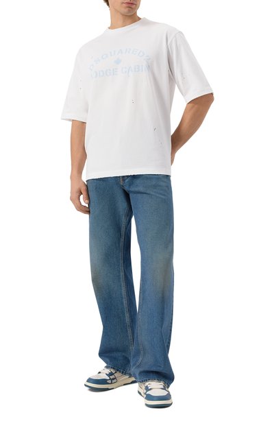 Кеды Skel-Top с фирменными аппликациями-костями по бокам изготовили из гладкой и зернистой кожи. Мыс изделия украсили перфорацией, а шнуровку — брендированной пластиной, которой вторит логотип на язычке, заднике и подошве обуви.