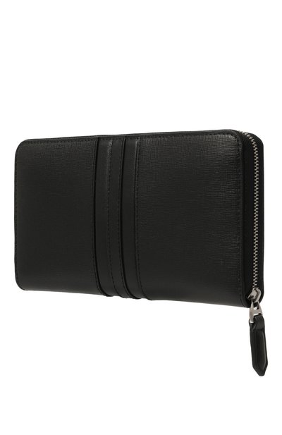 Кожаное портмоне с небольшим логотипом марки спереди дополнили ручкой. Внутри модели предусмотрели два отделения, карман на молнии, пару открытых отсеков и 16 карточных слотов.