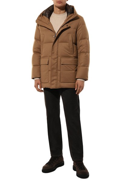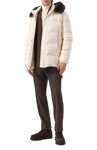 Ботинки Nodik со стеганым голенищем выполнили из гладкой и зернистой телячьей кожи. Модель с усиленной шнуровкой через D-образные петли установили на широкую подошву с протектором.