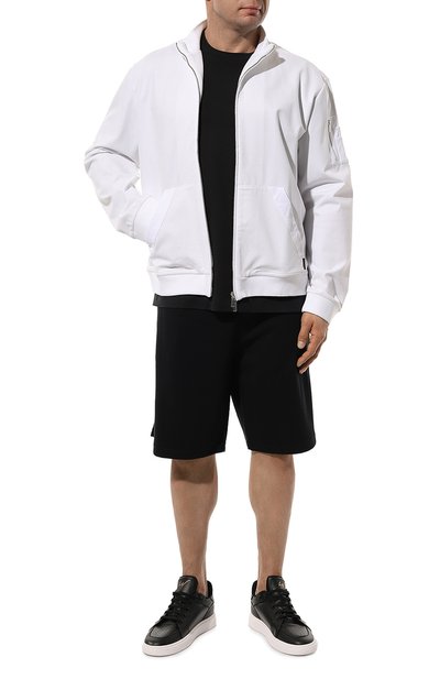 Толстовку с ребристыми манжетами и поясом в полоску сшили из хлопкового трикотажа с фирменным мотивом Majolica. Модель с глубоким капюшоном и боковыми карманами застегивается молнией.