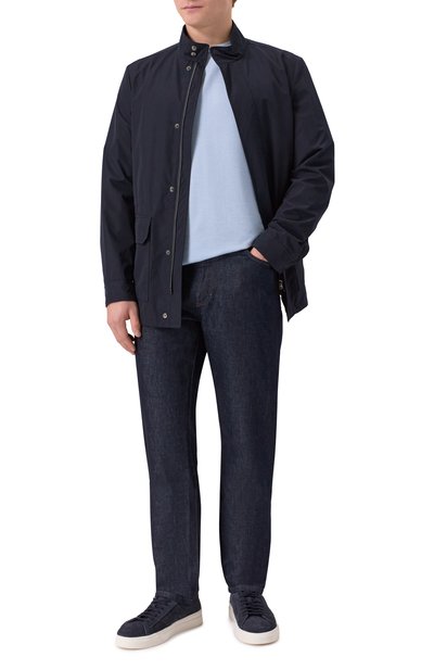 Футболку с круглой горловиной и слегка спущенной линией плеч выполнили из хлопкового трикотажа. Нагрудный карман украсили логотипом. В комплекте — аналогичная модель контрастного оттенка.