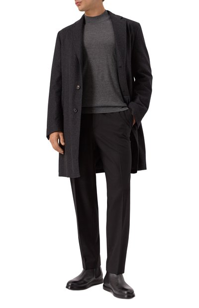 Меланжевая водолазка с вышитой монограммой D2 в тон поладит как с непринужденными джинсами, так и с классическими брюками и пиджаком. Модель с отворотом на горловине выполнили из трикотажа на основе шерсти первого пострига.