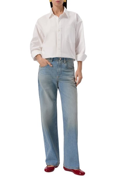 Для изготовления балеток Mary Jane с квадратным мысом выполнили из мелкозернистой кожи ягненка. Модель дополнили регулируемым ремешком с пряжкой сбоку.