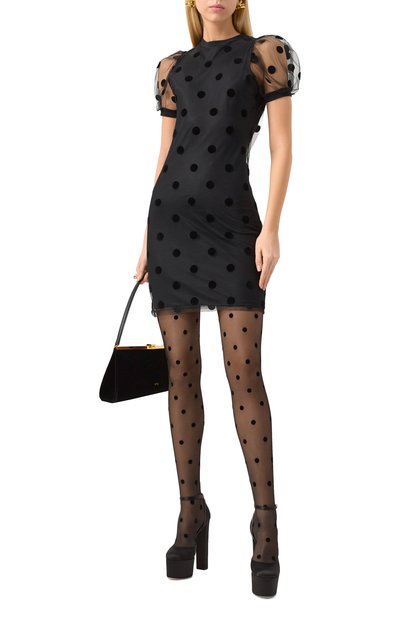Обхват груди 113 см, длина рукава от горловины 28 см, обхват талии 72 см, обхват бёдер 98 см, длина изделия по спинке 134 см.