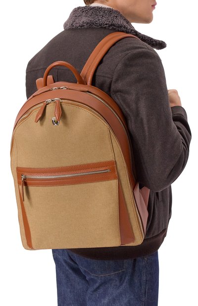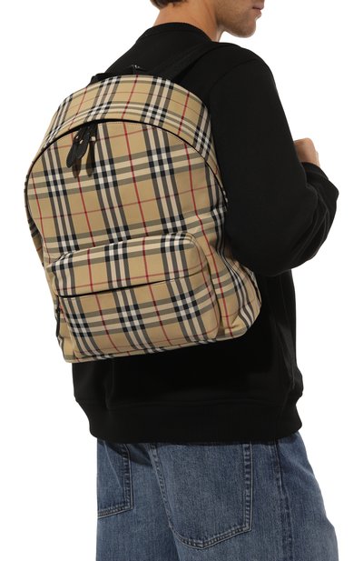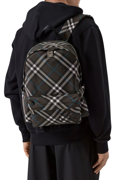 Рюкзак с короткой ручкой и отделением для ноутбука сшили из полиэстера с мотивом Burberry Check и полимерным покрытием. Один из трех внешних карманов аксессуара из коллекции Classics украсили аппликацией в виде эмблемы Equestrian Knight.