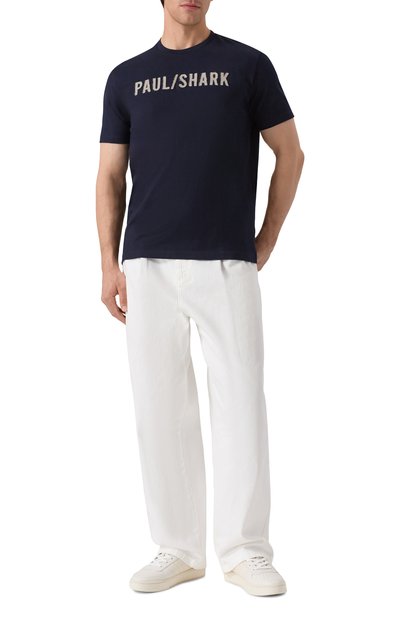 Футболку с круглым вырезом в рубчик выполнили из легкого хлопкового джерси. Спереди модель декорировали фирменным брендированным мотивом Knight.