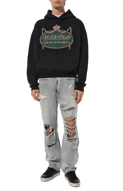Oversize-худи с рифлеными манжетами и низом украсили фирменной монограммой и логотипом спереди. Модель с карманом «кенгуру» выполнили из хлопкового трикотажа.