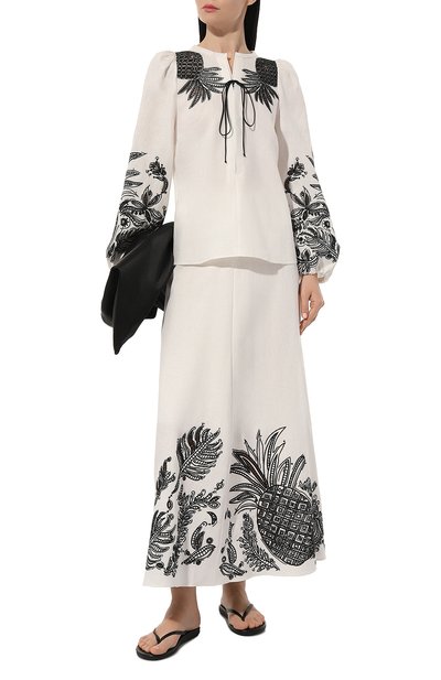 Для пошива плиссированной юбки с широким поясом использовали тонкий полиэстер. Модель с укороченным подкладом в тон застегивается потайной молнией сбоку.