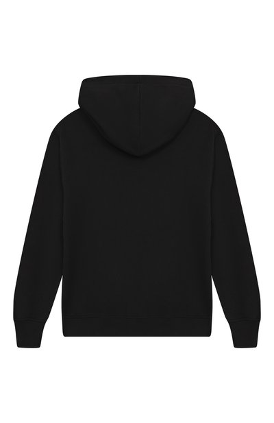 Худи с отделкой в рубчик украсили монохромным брендированным принтом с изображением смайла. Для изготовления модели использовали хлопковый трикотаж.