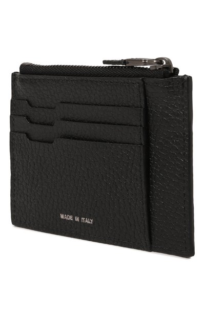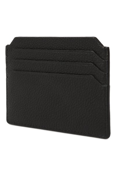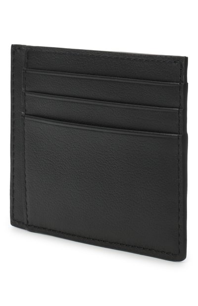 Картхолдер из полиуретана, имитирующего сафьяновую кожу, украсили накладкой-эмблемой. Аксессуар с центральным карманом для чеков дополнили шестью слотами для карт.
