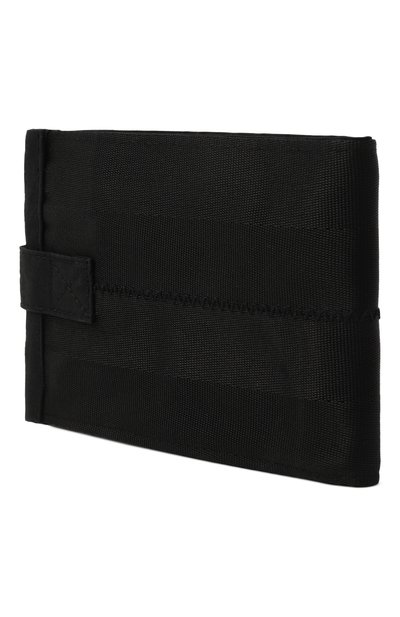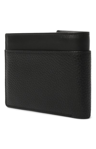Портмоне из зернистой телячьей кожи декорировали тисненым паттерном в виде тотемного орла и металлической эмблемой. Внутри – четыре слота для карт, отделение для купюр и карман с клапаном на кнопке для монет.