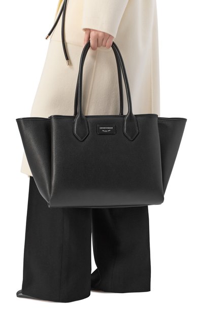 В коллекцию Armani Sustainability Values вошла сумка-тоут из вторичного нейлона. Аксессуар с длинными ручками из регенерированной кожи украсили фирменным тотемным орлом. Модель, как и внутренний карман, застегивается молнией. В комплекте – косметичка из такого же материала.
