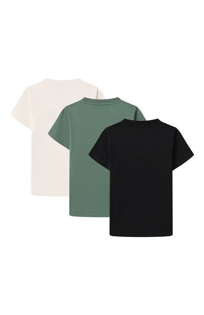Для изготовления футболок с круглой горловиной в рубчик использовали джерси из органического хлопка, выращенного в рамках инициативы Better Cotton. Все три изделия декорировали спереди разными брендированными принтами.