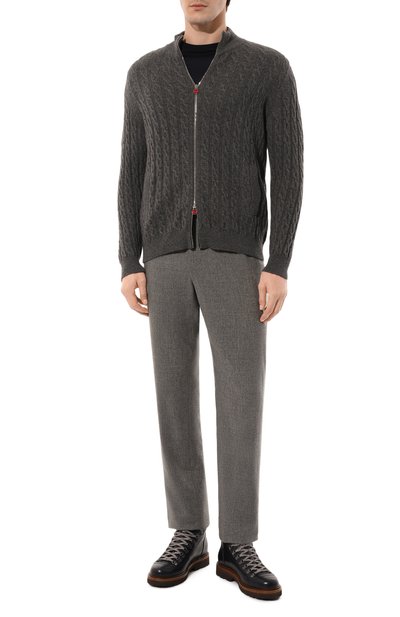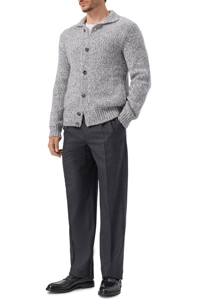 Кардиган с шалевым воротником застегивается акцентными брендированными пуговицами. Для создания модели использовали кашемировый трикотаж в крупный рубчик.
