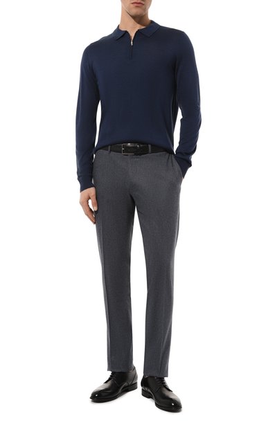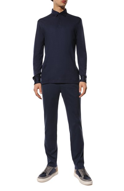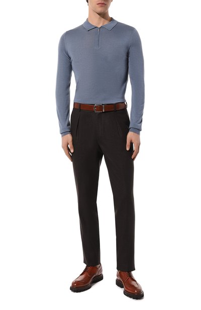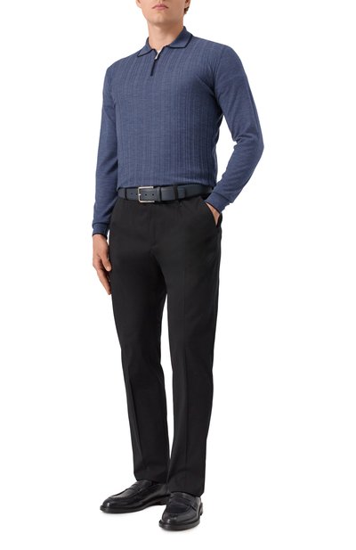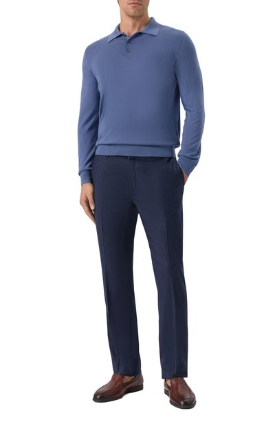 Лаконичное поло с перламутровыми пуговицами выполнили из шерсти мериноса с толщиной волокон 13,5 микрон. Модель гармонично дополнит повседневный образ.