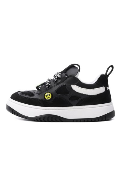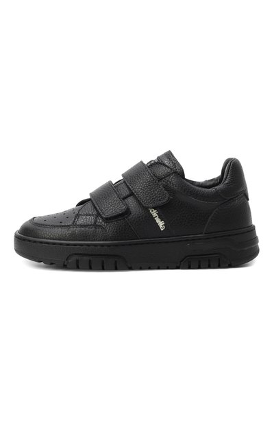Кеды с контрастными накладками выполнили из кожи и замши. Модель с текстильной вставкой и короткой петлей на заднике застегивается двумя ремешками велкро. Язычок украсили фирменным патчем.