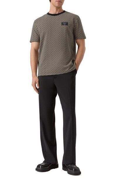 Футболку из хлопкового джерси украсили фирменным принтом Majolica. Внизу и на рукавах в рисунок вписали повторяющийся логотип, а эластичную горловину подчеркнули полоской.