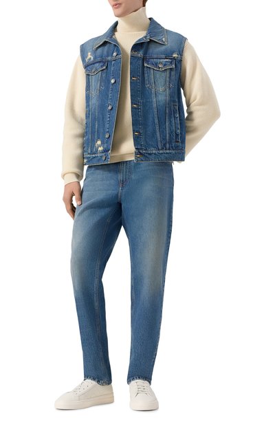 Для пошива джинсов кроя Regular fit выбрали деним из чистого хлопка. Принадлежность модели бренду подчеркнули фирменной двухслойной пластиной на одном из пяти карманов.
