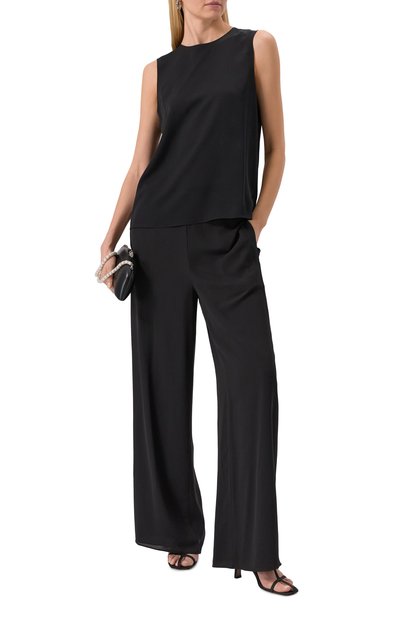 Брюки Tavati свободного кроя сшиты из струящегося вискозного атласа. Драпированная модель с широким поясом-кулиской дополнена двумя врезными карманами.