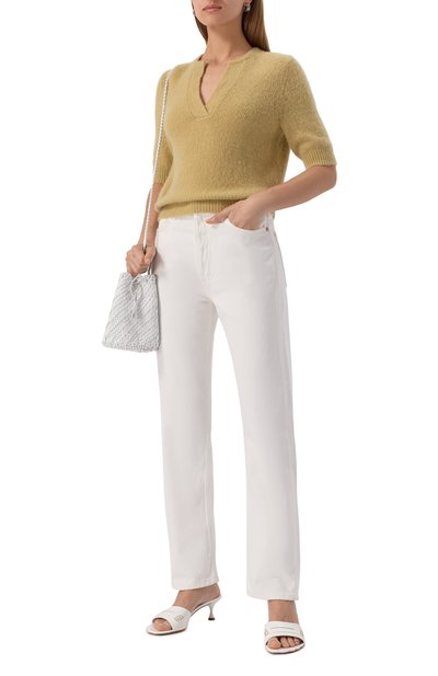 Укороченные джинсы 90’s Pinch Waist с высокой посадкой выполнили из регенерированного хлопка оттенка Marshmallow. Брюки с ширинкой button fly дополнили пятью карманами.
