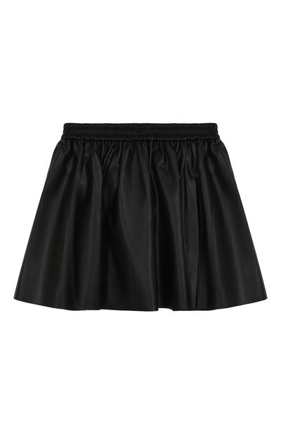 Расклешенную юбку из полиэстерового крепа украсили атласными бантами с кристальной отделкой. Принадлежн ость модели марке обозначили накладкой в виде эмблемы на поясе.
