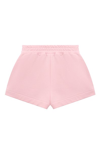 Шорты с двойными защипами и боковыми карманами дополнили атласным подкладом. Модель из полиэстерового крепа украсили накладкой в виде эмблемы марки.