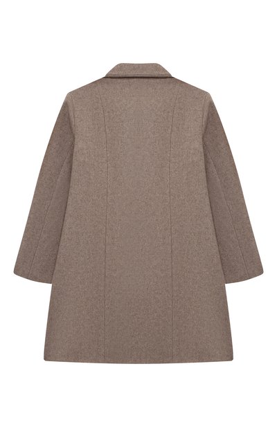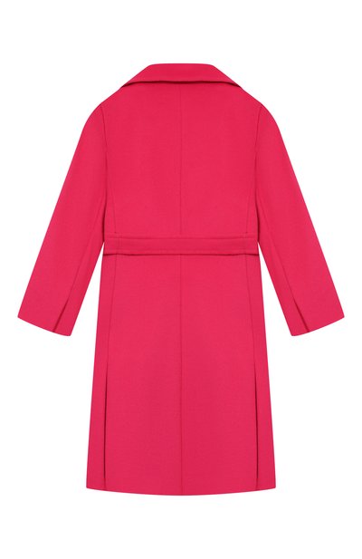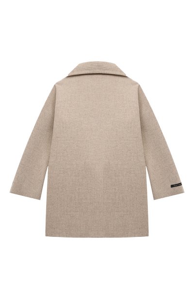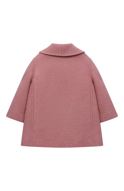 Пальто с вискозным подкладом и двумя карманами выполнили из текстиля на основе полиэстера. Лацканы модели подчеркнули объемными цветочными аппликациями, а левый рукав дополнили пряжкой-эмблемой, которой вторит оттиск на пуговицах.