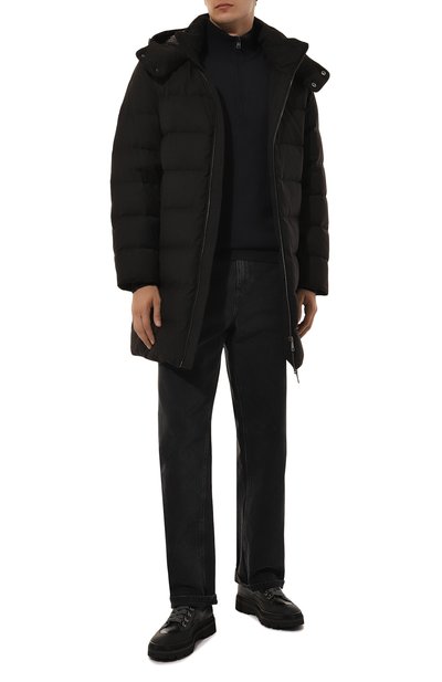 Ботинки Megeve с внутренней текстильной отделкой выполнили из зернистой кожи, укрепив мыс и задник изделия накладками из гладкого материала. Модель с усиленной шнуровкой и боковой молнией поставили на резиновую подошву с протектором.