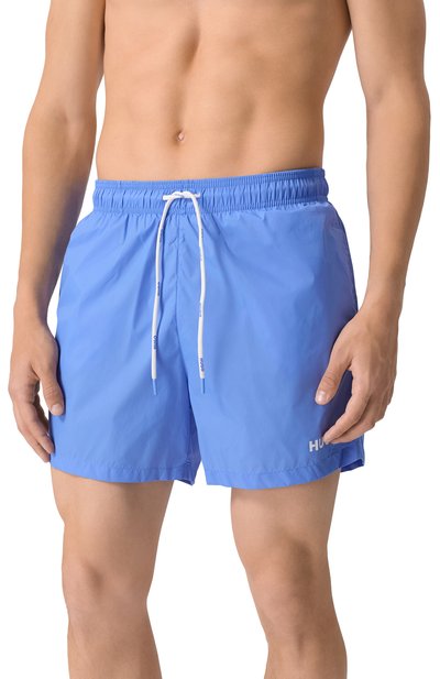 Плавки-шорты Abas с эластичным поясом-кулиской сшиты из матового полиэстера. Модель с подкладом и тремя карманами украшена крупным логотипом марки сбоку.