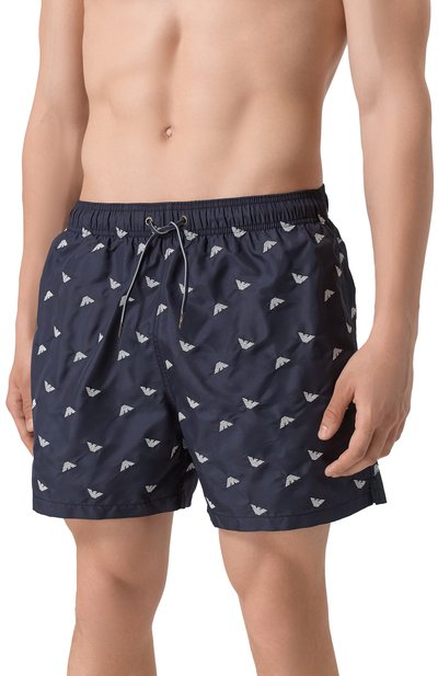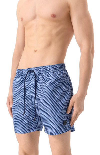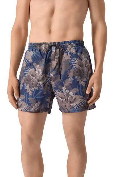 Плавки-шорты с поясом-кулиской сшиты из переработанного полиэстера с принтом пейсли. Модель с накладным и двумя врезными карманами украшена прорезиненным брендированным патчем сбоку.