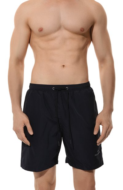 Плавки-шорты выполнили из быстросохнущего материала на основе эластомультиэстера. Модель декорировали прорезиненным брендированным патчем спереди и логотипом на эластичном поясе-кулиске сзади. Помимо боковых карманов предусмотрели накладной задний, украшенный фирменным триколором.