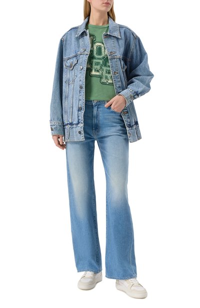Футболку Papaia прямого кроя сшили из хлопкового джерси. Модель с круглой горловиной в рубчик дополнили накладным карманом с вышитой эмблемой марки.