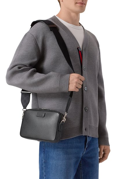 Сумку GG Supreme украсили вставкой из покрытого полимером текстиля с фирменным одноименным принтом. Аксессуар с накладным карманом снаружи и внутренним на молнии дополнили съемным регули руемым ремнем.