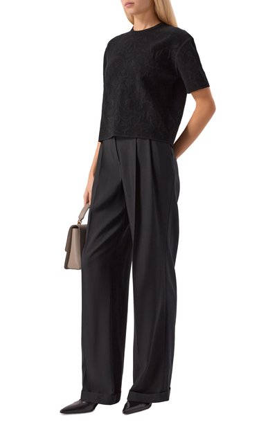 Пуловер выполнен из смеси шерсти, альпака и полиамида. Изделие с горловиной, манжетами и поясом в рубчик украшено логотипом бренда, изображением животных и говорящей надписью.