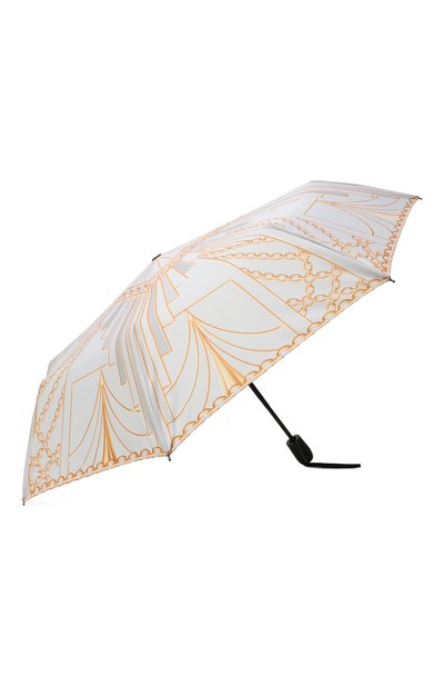 Зонт-автомат с куполом из восьми секций выполнили из полиэстера с принтом на тему чаепития. Брендированную рукоятку аксессуара дополнили текстильной петлей.