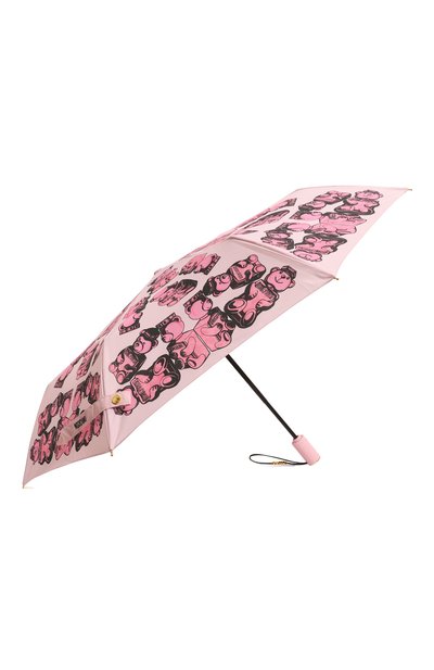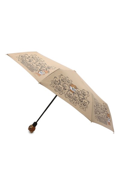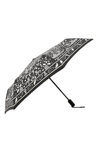 Купол складного зонта с металлическим каркасом выполнили из матового полиэстера с фирменным принтом. Глянцевую пластиковую ручку с петлей украсили тисненым логотипом марки.