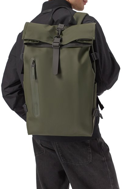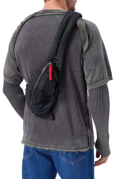 Небольшой нейлоновый рюкзак Tech-D X с ручкой на задней панели декорировали спереди вышитой эмблемой Oval D. Снаружи модель с компрессионными эластичными шнурами дополнили четырьмя отделениями с молниями и карманом для бутылки с водой, а внутри – тремя карманами и слотом для ноутбука.