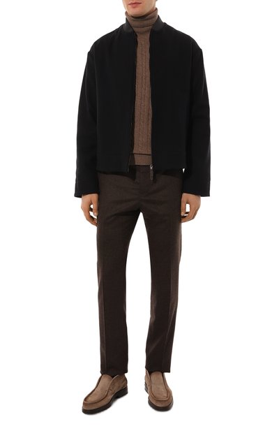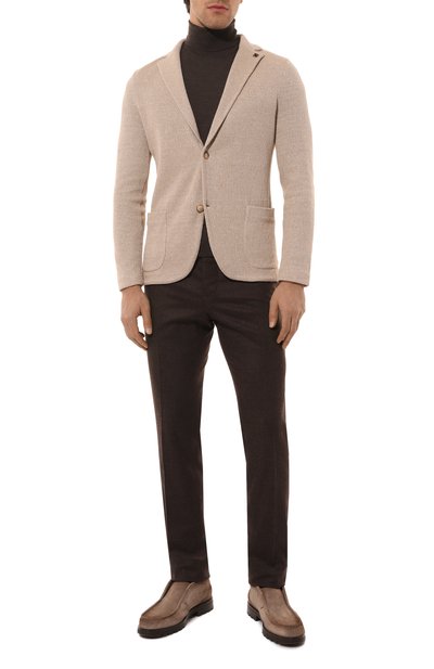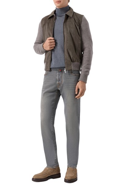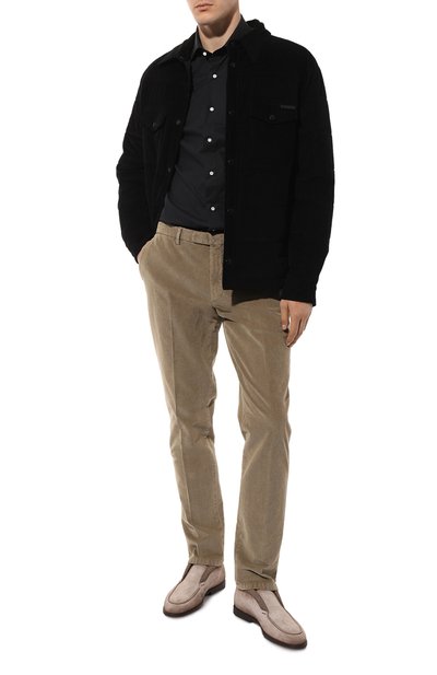 Ботинки Detroit на широкой подошве с протектором изготовили из тонко выделанной замши. По бокам модель с рельефным швом вдоль мыса украсили стежками фирменного оттенка Arancio Santoni.