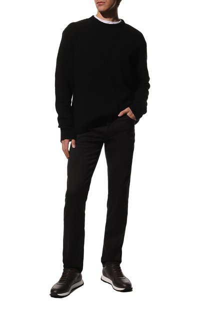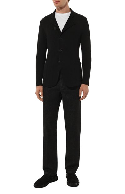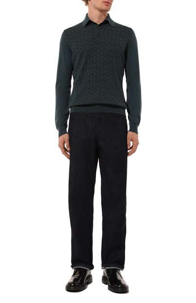 Лаконичные прямые джинсы с пятью карманами выполнили из хлопкового денима стрейч. Пояс модели сзади украсили патчем с эмблемой и логотипом бренда.