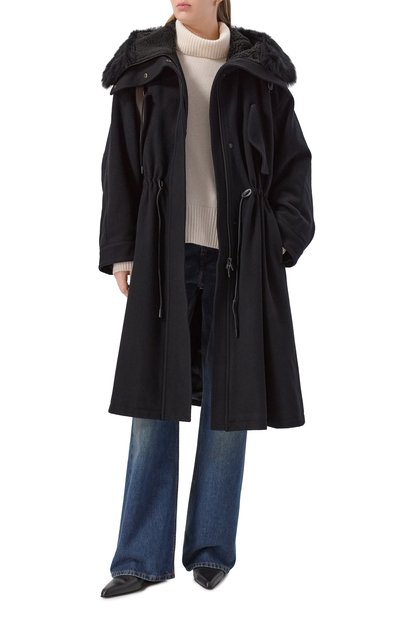 Утепленную пухом и пером парку Eneida-STP с двумя боковыми карманами и эластичными манжетами выполнили из полиэстера. Модель с отложным воротником, превращающимся в стойку, застегивается молнией, скрытой под планкой с кнопками. В комплекте — пояс.