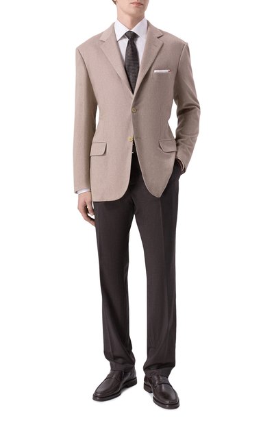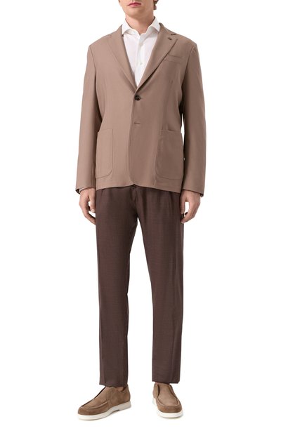Клетчатый пиджак из микса шерсти, шелка и кашемира станет основой образа smart casual. Сзади модель на подкладе с фирменным узором дополнили двумя высокими шлицами. Помимо накладных боковых карманов предусмотрели врезной нагрудный с листочкой.