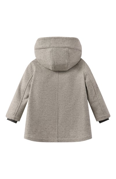 Стеганую утепленную парку выполнили из полиэстера. Модель с регулируемым капюшоном и четырьмя карманами застегивается молнией, скрытой штормовой планкой с кнопками.