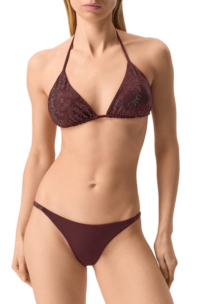 Раздельный купальник из линии Lumiere сшили из нейлонового трикотажа с добавлением люрекса. Бра с мягкими чашками на косточ ках дополнили плавками с низкой посадкой.