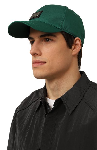 Бейсболку с потертостями на козырьке выполнили из хлопкового твила. Спереди изделие украсили брендированной надписью, по бокам – геральдическими аппликацией и вышивкой, а над регулируемым ремешком сзади – именами дизайнеров марки.