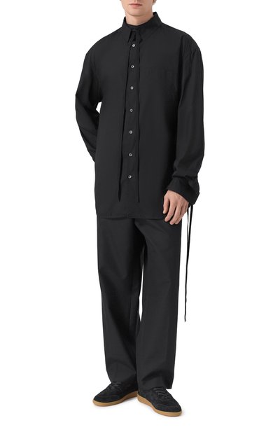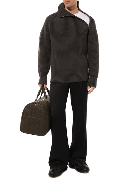 Кеды с внутренней отделкой из пушистой овчины выполнили из гладкой кожи и замши. Язычок пары на гибкой подошве декорировали текстильным патчем с логотипом марки.