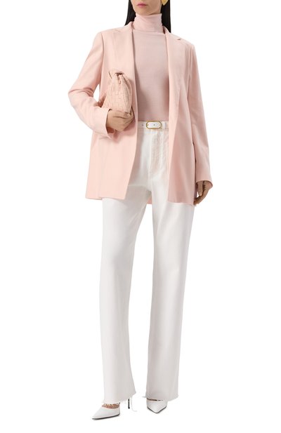 Водолазка с рифлеными манжетами, поясом и высоким воротом органично впишется в базовый гардероб. Лаконичную модель выполнили из шерсти мериноса плотностью 13,5 микрон.