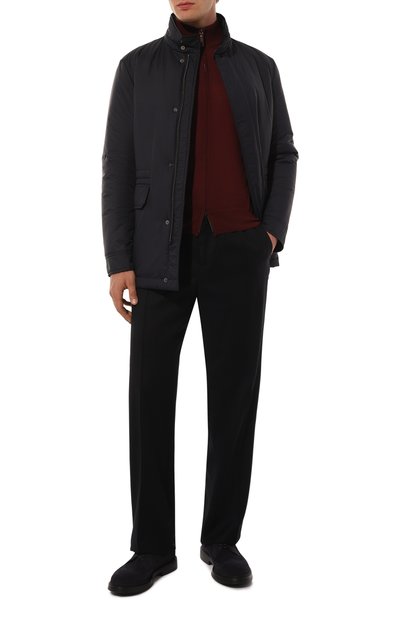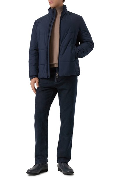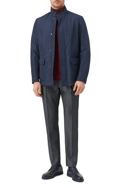 Утепленную куртку с воротником-стойкой и потайной регулируемой кулиской на поясе выполнили из полиэстера. Модель с двумя прорезными карманами, интегрированными в карманы с клапанами, застегивается молнией, скрытой штормовой планкой с кнопками.